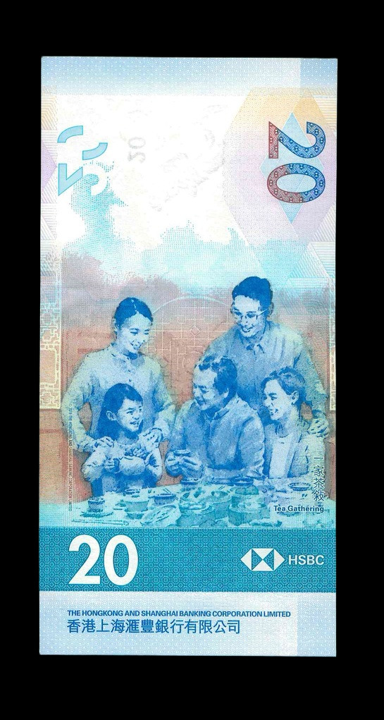 2020 香港上海滙豐銀行 $20 UNC 編號: JD111000(雙豹二進制,頂級雪白)