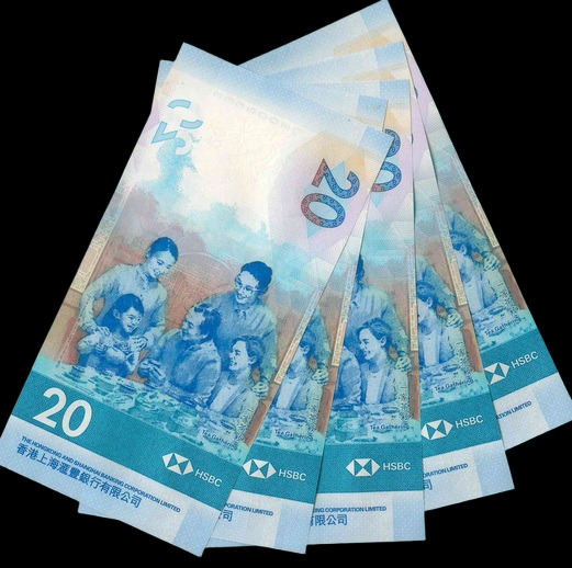 2020 香港上海滙豐銀行 $20 UNC 編號: JH002333...(共5張,豹子同號,頂級雪白)