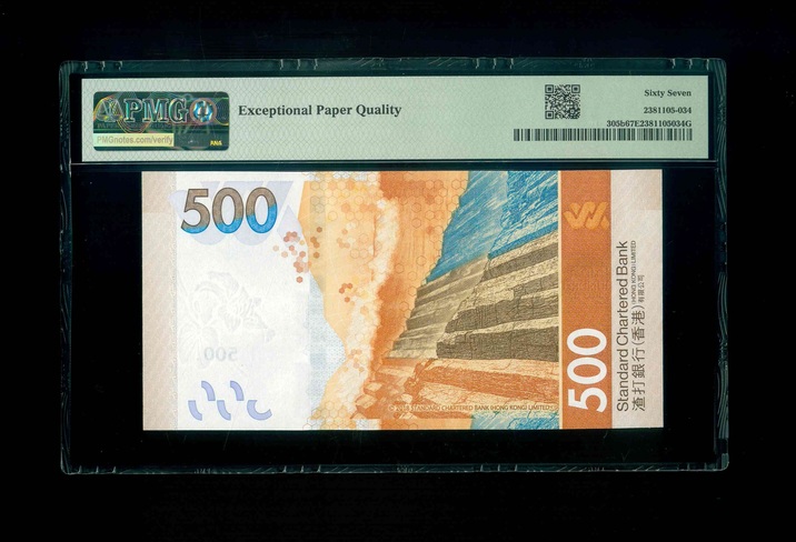 2020 香港渣打銀行 $500 PMG 67 EPQ 編號: BJ191919(重複號,頂級雪白)