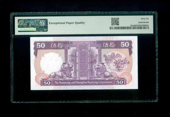 1987 香港上海滙豐銀行 $50 PMG 66 EPQ 編號: AJ406990(頂級雪白)
