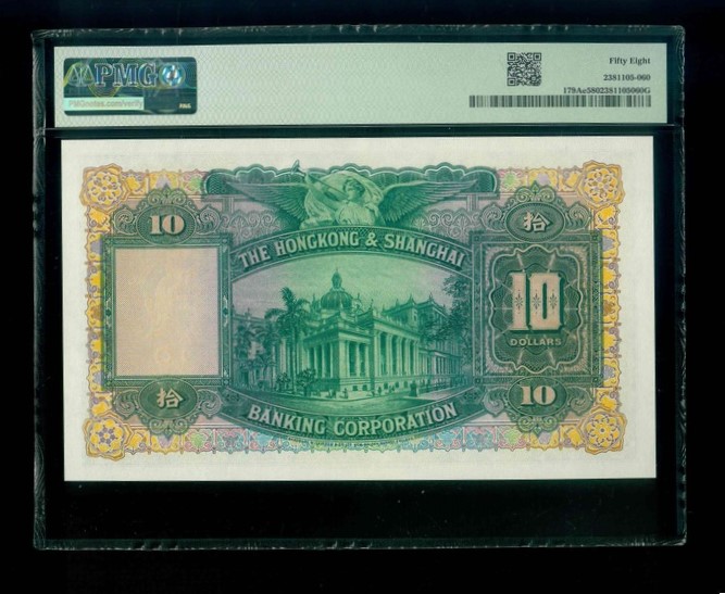 1959 香港上海滙豐銀行 $10 PMG 58 編號: X/J 021528