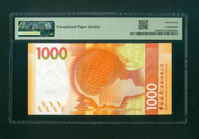 2020 香港中國銀行 $1000 PMG 67 EPQ 編號: EC000118(頂級雪白)