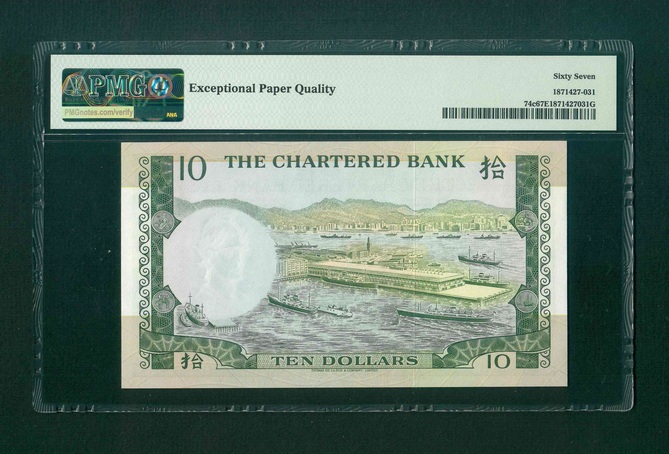 1977 香港渣打銀行 $10 PMG 67 EPQ 編號: D4067675(頂級雪白)