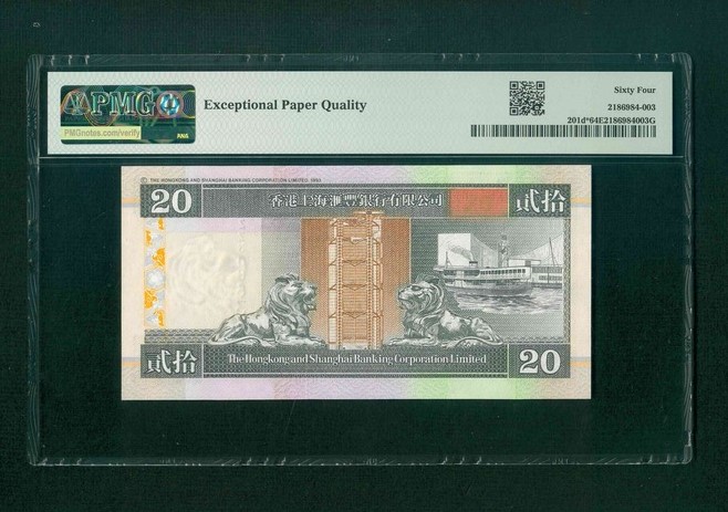 2002 香港上海滙豐銀行 $20 PMG 64 EPQ 編號: ZZ308637(補版系列)