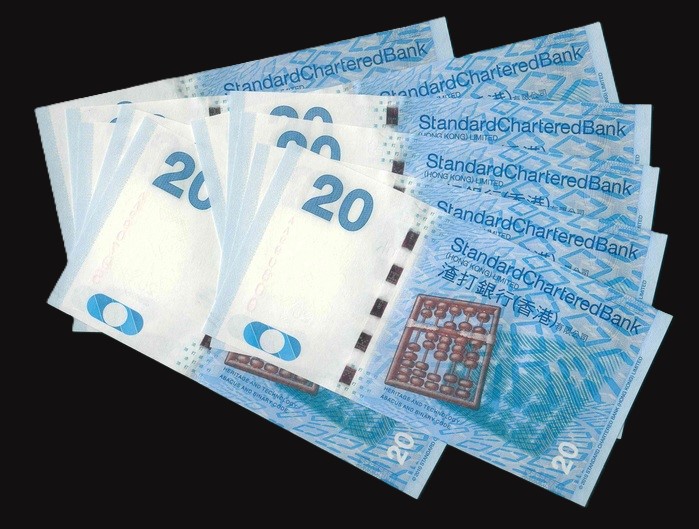 2010 香港渣打銀行 $20 UNC 編號: AA990791-800(共10張,連號,頂級雪白)