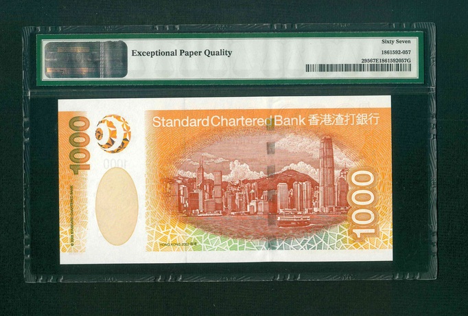 2003 香港渣打銀行 $1000 PMG 67 EPQ 編號: AA594796(頭版系列,頂級雪白)