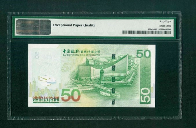 2007 香港中國銀行 $50 PMG 68 EPQ 編號: ZZ424062(補版系列,頂級雪白)