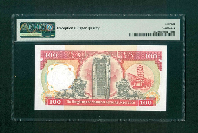 1992 香港上海匯豐銀行$100 PMG 66 EPQ 編號: PR327510(頂級雪白)