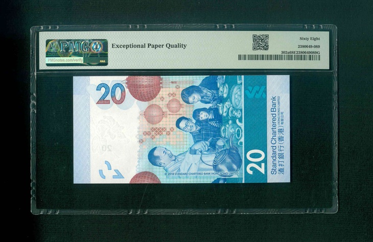 2018 香港渣打銀行$20 PMG 68 EPQ 編號: AN767676(高分重覆號,頂級雪白)