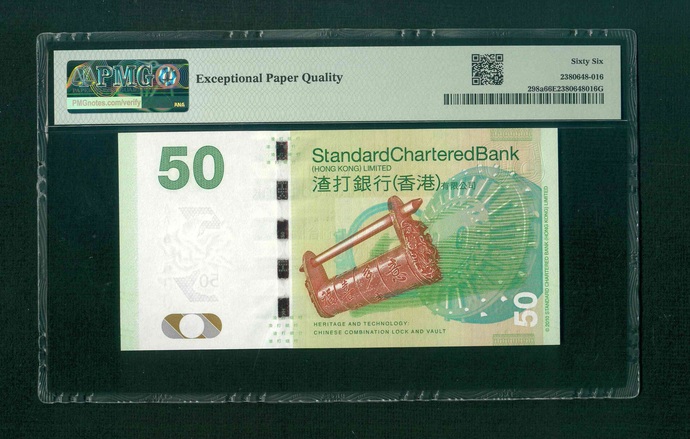 2010 香港渣打銀行$50 PMG 66 EPQ 編號: AA192080(頭版系列,頂級雪白)