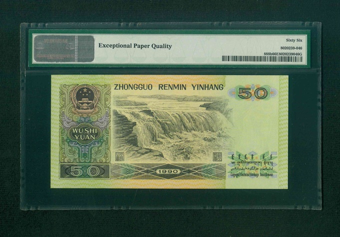 1990 中國人民銀行 $50 PMG 66 EPQ 編號: UA34672271(頂級雪白)