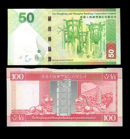 2016/2002 香港上海滙豐銀行 $50 $100 UNC 編號: FM/LS 000027…(共2張,同號)