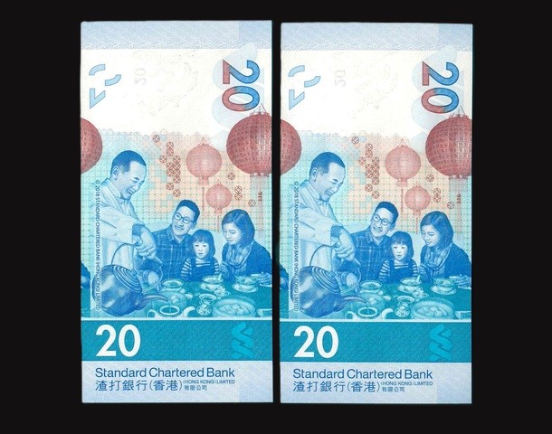 2023 香港渣打銀行 $20 UNC 編號: DA/DH 203888…(共2張,豹子同號,頂級雪白)