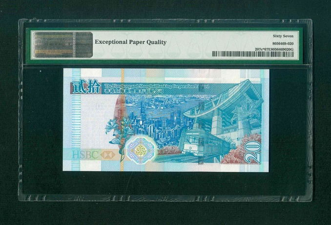 2006 香港上海滙豐銀行 $20 PMG 67 EPQ 編號: ZZ396078(補版系列,頂級雪白)
