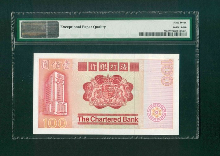 1982 香港渣打銀行 $100 PMG 67 EPQ 編號: V957920