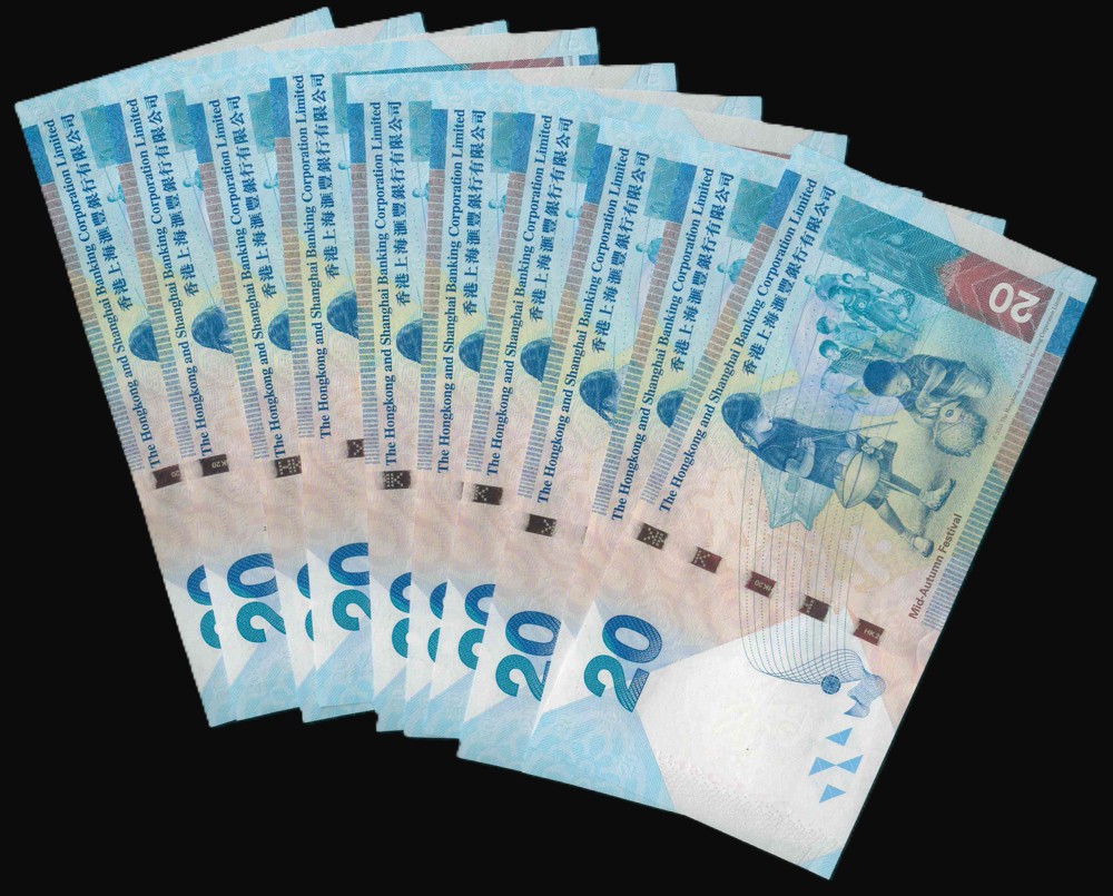 2016 香港上海匯豐銀行$20 UNC 編號: ZZ430431-440(標準十連,頂級雪白)
