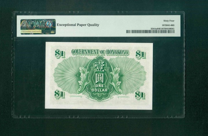 1955 香港政府 $1 PMG 64 EPQ 編號: 1U 536161(紙胆系列,頂級雪白)