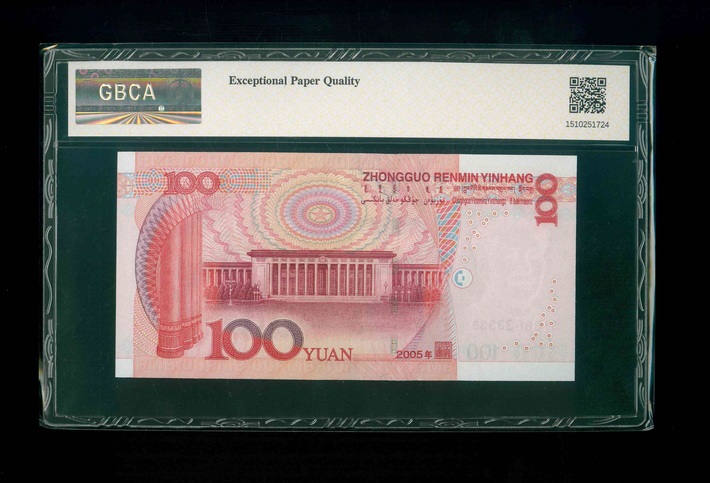 2005 中國人民銀行 $100 GBCA 67 EPQ 編號: S1D8633333(頂級雪白)