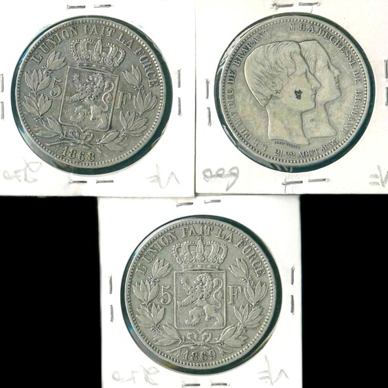 1853/68/69 比利時 5 Francs VF 編號: NIL(共3枚)