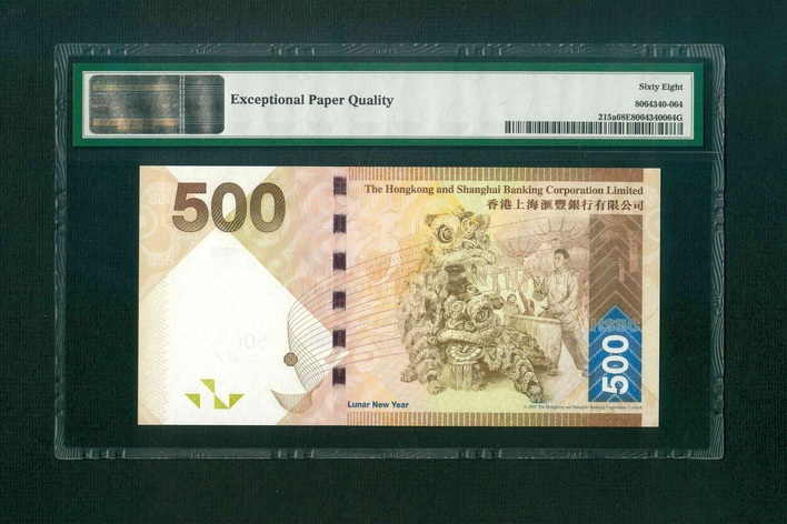 2010 香港上海匯豐銀行$500 PMG 68 EPQ 編號: BB332222(高分雙冠獅子號,頂級雪白)