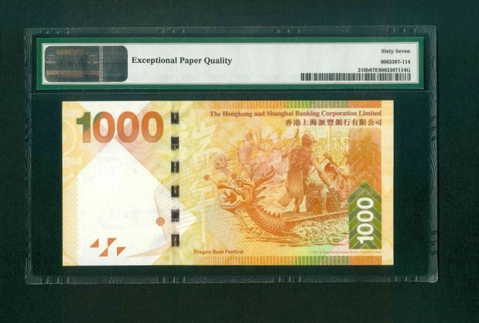 2012 香港上海匯豐銀行$1000 PMG 67 EPQ 編號: CC977777(雙冠老虎號,頂級雪白)