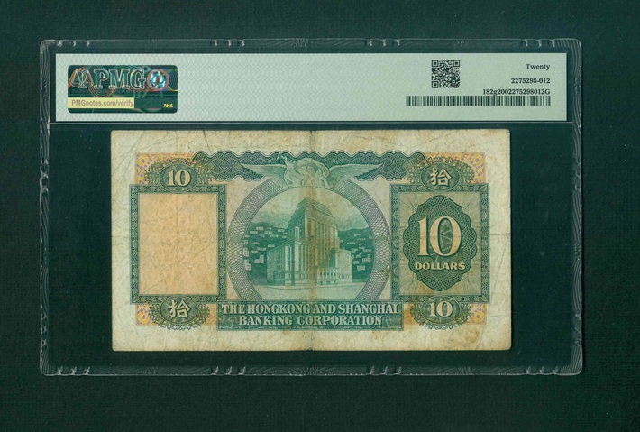 1973 香港上海匯豐銀行$10 PMG 20 編號: HU978987(正面移位,請自行判斷)