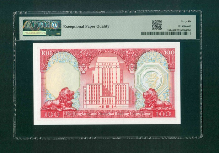 1983 香港上海匯豐銀行$100 PMG 66 EPQ 編號: YT299281(頂級雪白)