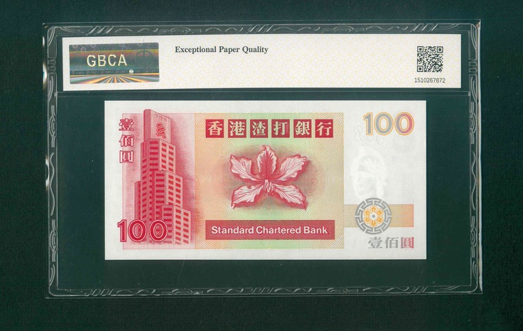1994 香港渣打銀行$100 GBCA 66 EPQ 編號: AT744914(頂級雪白)
