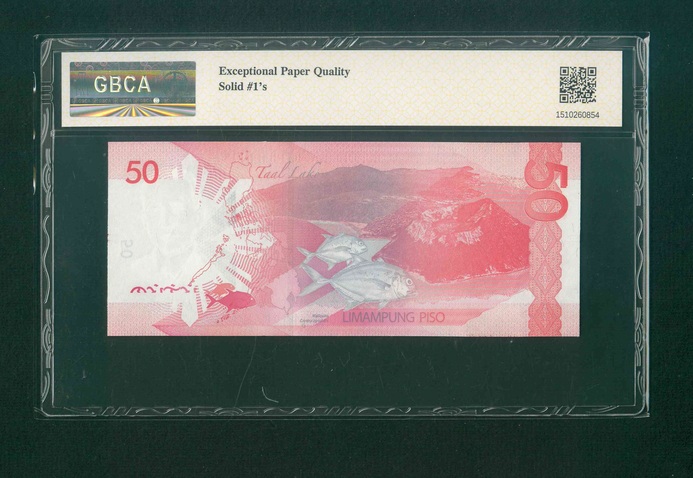 2025 菲律賓 50 Piso GBCA 66 EPQ 編號: EP111111(全1,頂級雪白)