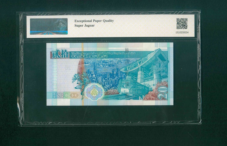 2009 香港上海滙豐銀行 $20 GBCA 66 EPQ 編號: AV444000(雙豹號,頂級雪白)