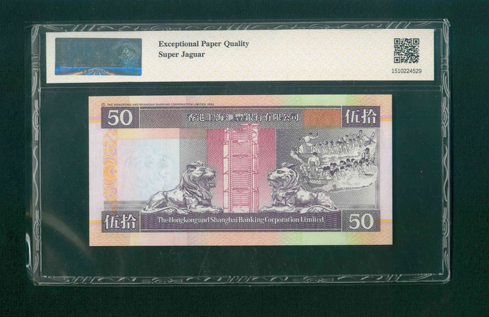 2002 香港上海滙豐銀行 $50 GBCA 66 EPQ 編號: CW000444(雙豹號,頂級雪白)