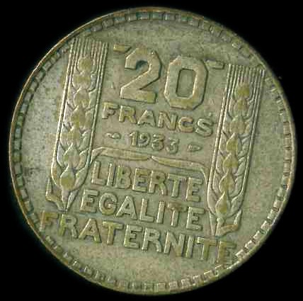 1933 法國銀幣 20 Fr 品相如圖 編號:NIL