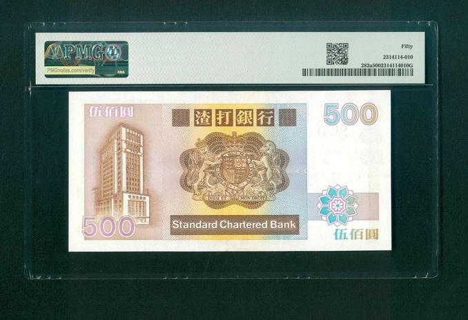 1989 香港渣打銀行 $500 PMG 50 編號:G953432