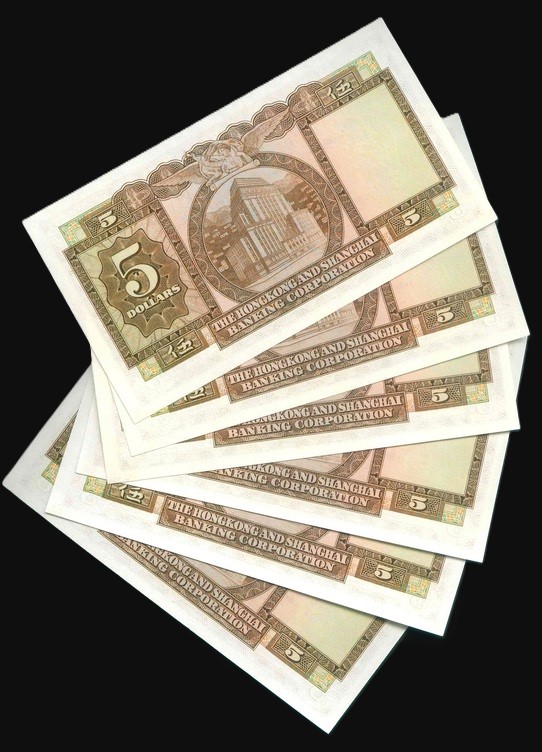 1967 香港上海滙豐銀行 $5 AU 編號:154582-87 BT(共6張,連號)