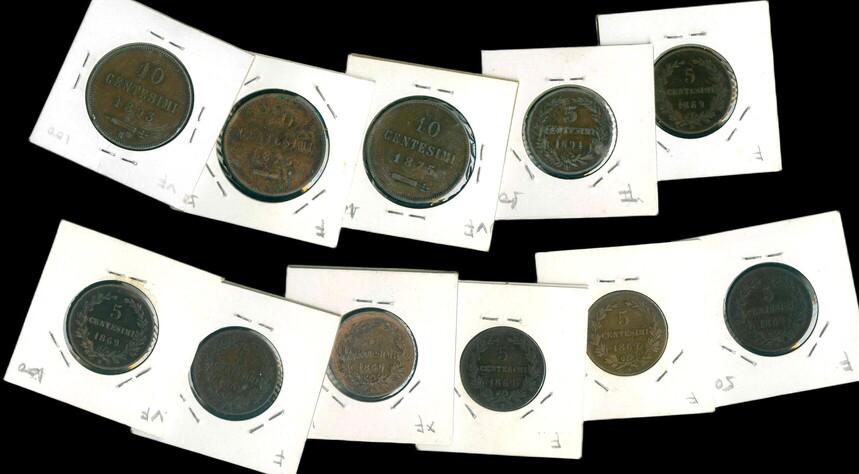 1869M-1894R San Marino(聖馬利諾) 5,10 Centimes F/VF/XF 編號:NIL(共11枚)