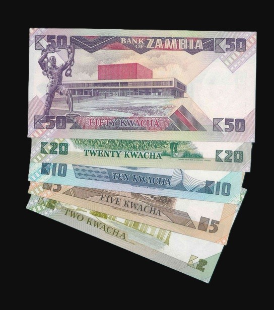 ND Zambia(尚比亞) 2-50 Kwacha UNC 編號:81/B 367841…(共5張)