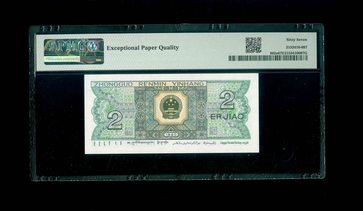 1980 中國人民銀行 2角 PMG 67 EPQ 編號:QK70846797(頂級雪白)