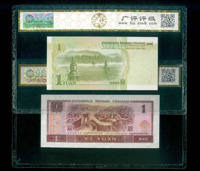 1996/1999 中國人民銀行 $1 GPG 67 EPQ/* 編號:WI 93993288…(共2張)