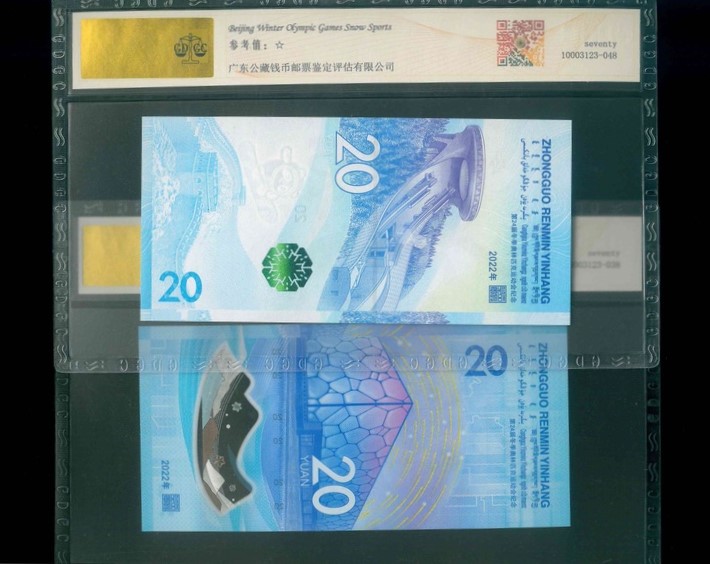2022 中國人民銀行北京冬奧紀念鈔 $20 GDGC 70 EPQ 編號:J263790825…(共2張,尾7同號)
