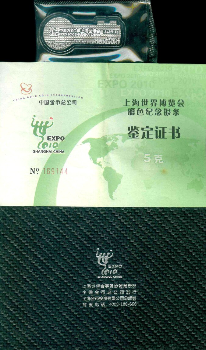2010 上海世博紀念彩色銀品(5g.Ag 99.9) 品相如圖 編號:NIL(証書連盒)