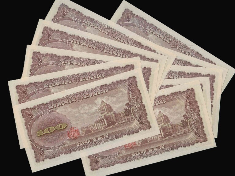 ND 日本銀行劵百円 UNC 編號:QR877721-30D(共10張,連號,頂級雪白)