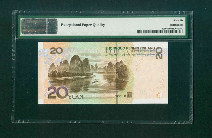 2005 中國人民銀行 $20 PMG 66 EPQ 編號:TE29528444(豹子號,頂級雪白)