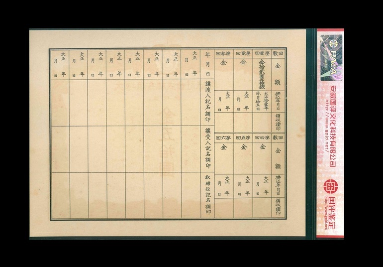 1922 日本大正11年大塚織布株式會社株劵拾株劵金五拾圓 PACA 65 編號:NIL