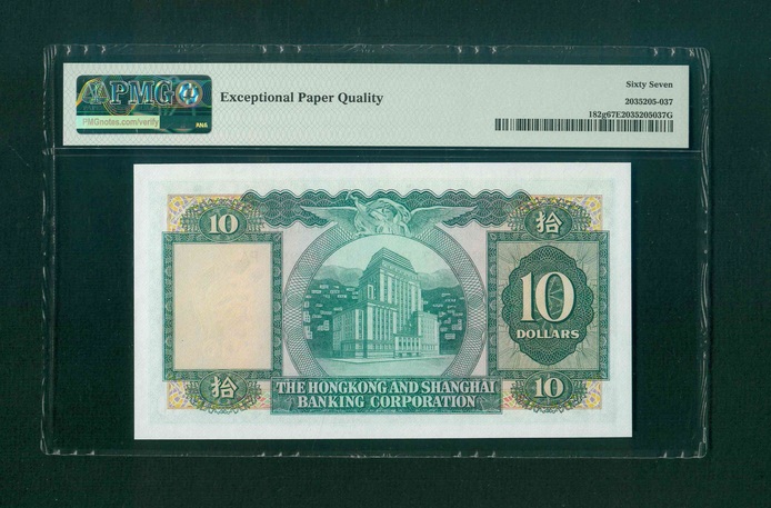 1970 香港上海滙豐銀行 $10 PMG 67 EPQ 編號:606237 PA(頂級雪白)