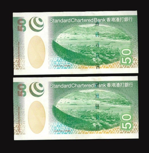2003 香港渣打銀行$50 UNC 編號: AA099976-977(頭版連號,共2張)