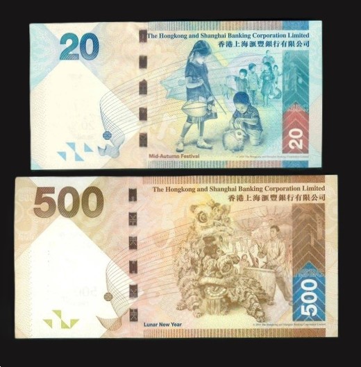 2010-14 香港上海匯豐銀行$20-$500 UNC 編號: DL000021…(同號,共2張)