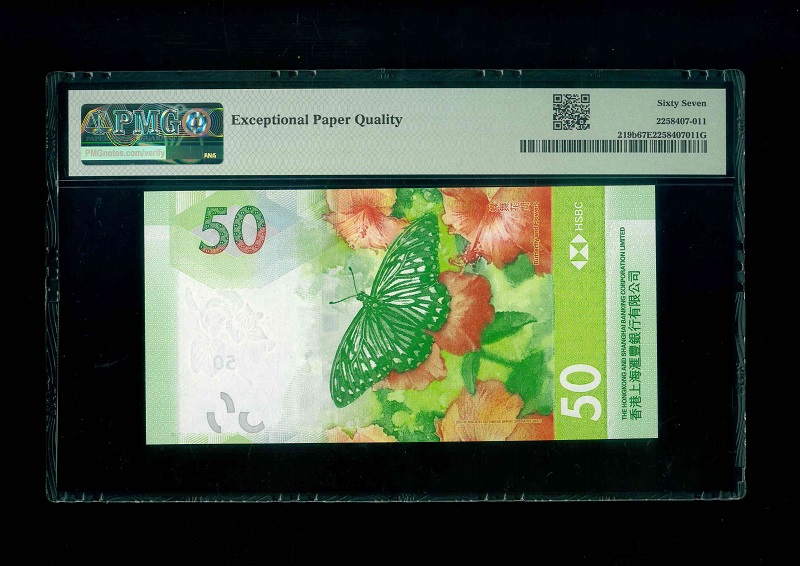 2020 香港上海匯豐銀行$50 PMG 67 EPQ 編號: CS666999(雙豹旋轉號,頂級雪白)