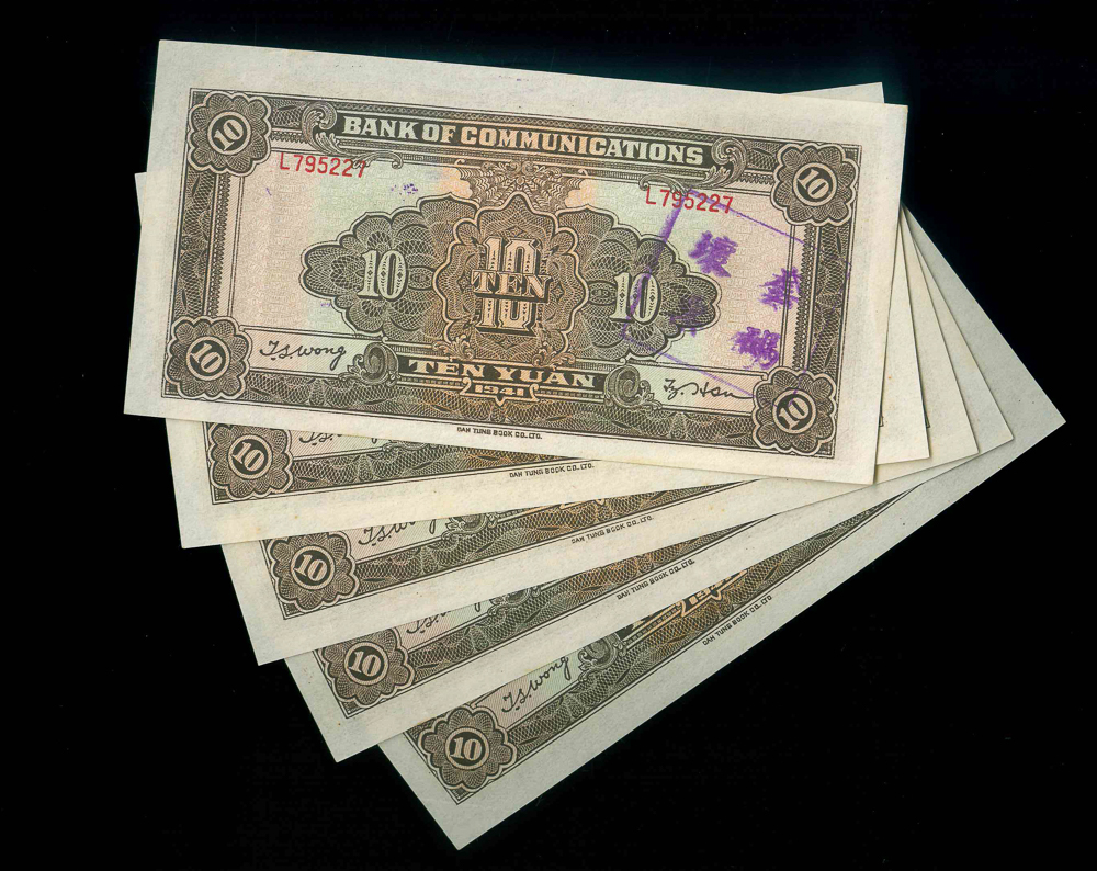 1941 交通銀行$10 EF-AU 編號: P818706…, 壞票, 共5張