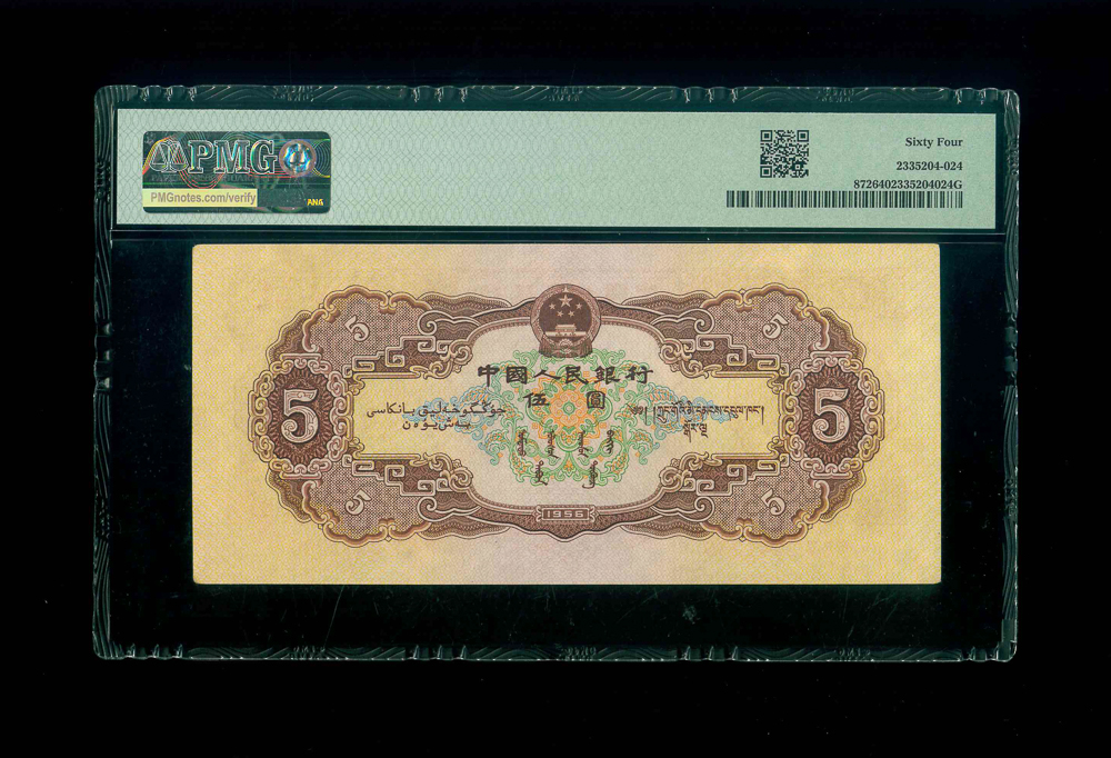 1956 中國人民銀行$5 PMG 64 編號: 2241286 Block 435, 星水印