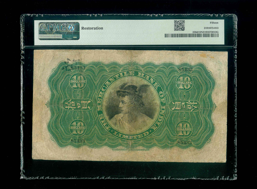 1937 香港有利銀行$10 PMG 15 NET 編號: 85433, 有修補, 手簽系列